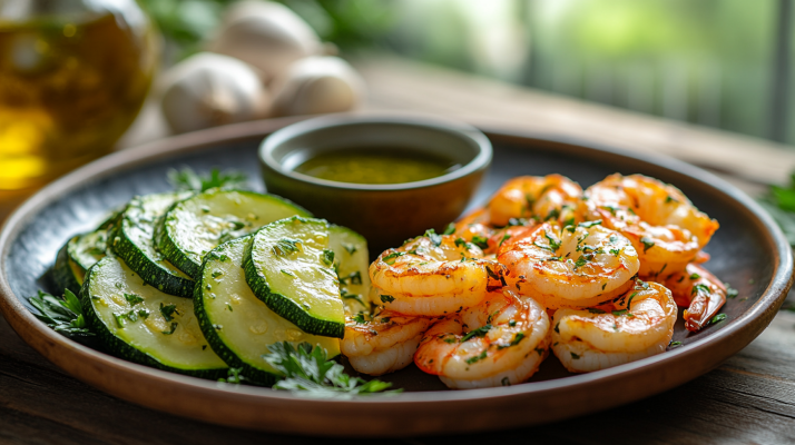 Dieses Gericht zeigt, dass gesundes Essen nicht langweilig sein muss! Mit saftigen Garnelen, aromatischem Knoblauch und frischer Zucchini bekommst du eine leichte, aber sättigende Mahlzeit, die deine Gewichtsabnahme optimal unterstützt.