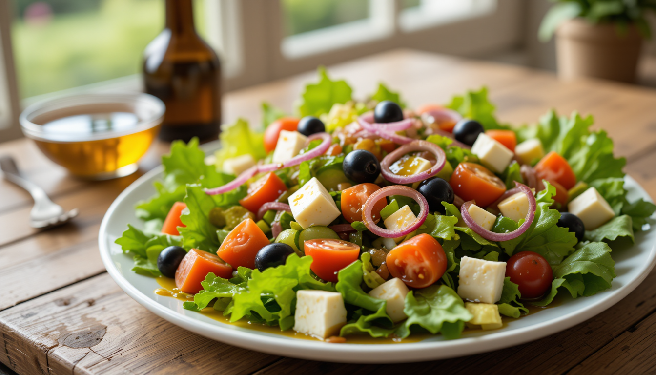 Ein frischer, knackiger Salat kann mehr als nur eine Beilage sein – er kann zu einer sättigenden, gesunden Hauptmahlzeit werden, die dir beim Abnehmen hilft, ohne dass du auf Genuss verzichten musst. Dieser Salat kombiniert frische Zutaten mit cremigem Feta und herzhaften Oliven – eine perfekte Kombination aus leichtem Genuss und sättigenden Nährstoffen.