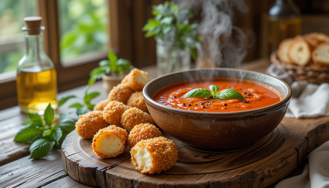Tomatensuppe mit Mozzarella-Sticks – Leichter Genuss ohne Reue!